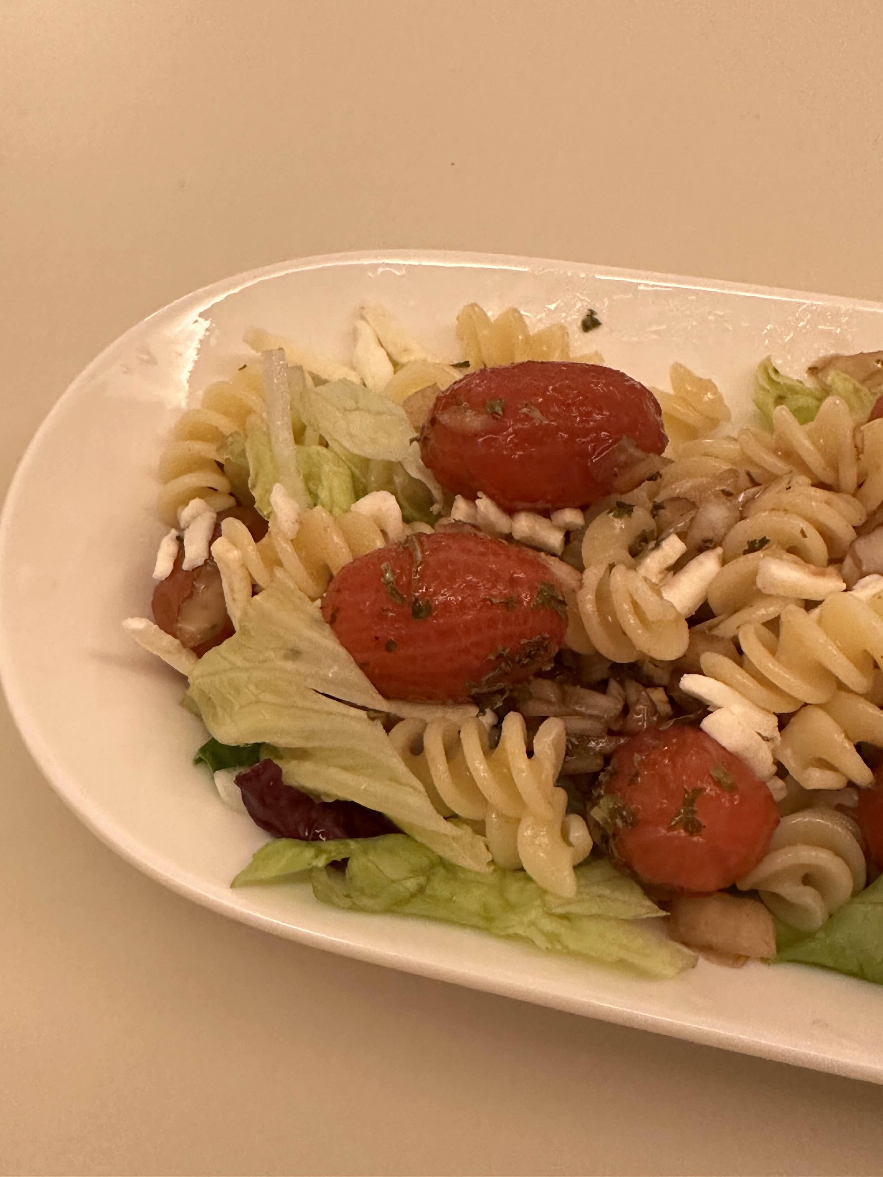 소량을 만든다고는 했지만 혼자 먹기에는 양이 푸짐하여, 푸실리로 토마토마리네이드 냉파스타도 만들어 먹었다.